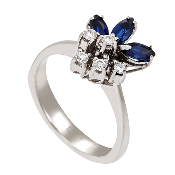 Ring, 14K, Weißgold, Saphire, Brillanten