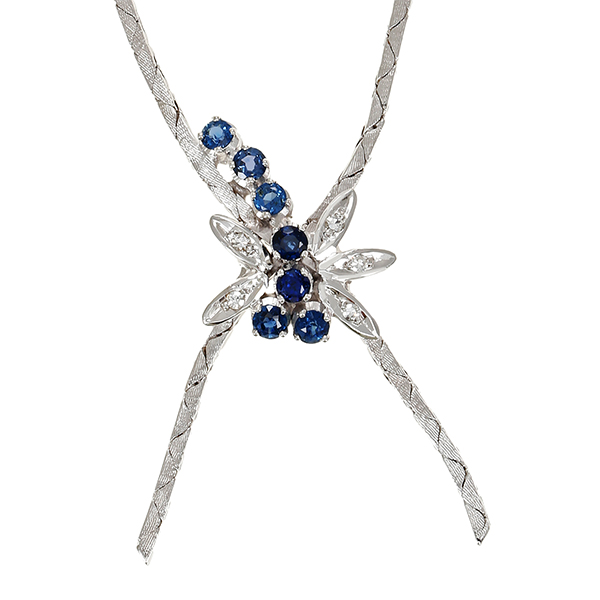 Collier, 18K, Weißgold, Saphire, Diamanten