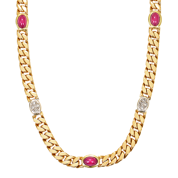 Collier, 14K, Gelbgold, Rubin, Diamanten