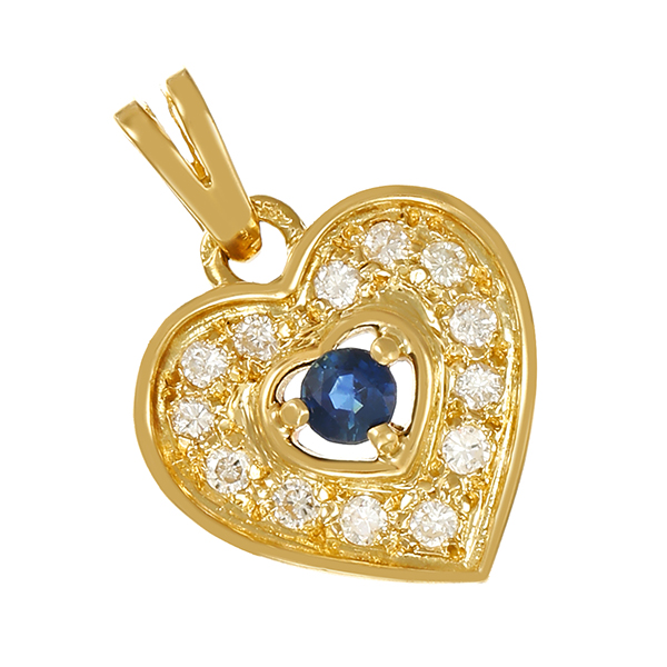 Anhänger, 14K, Gelbgold, Saphir, Brillanten, Herz