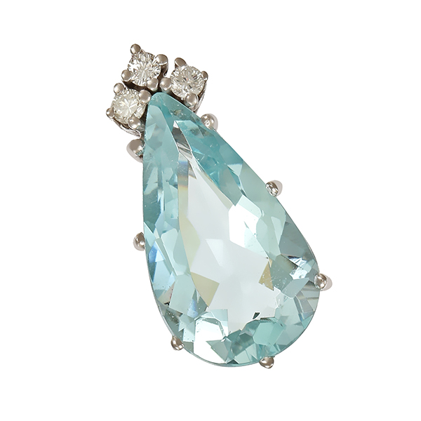 Anhänger, 14K, Weißgold, Aquamarin, Brillant