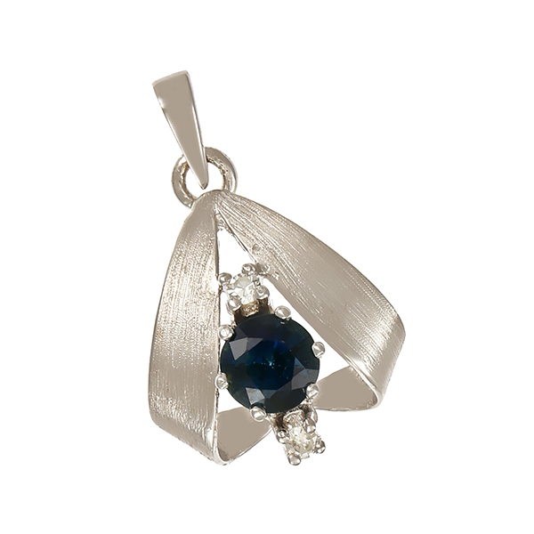 Anhänger, 14K, Weißgold, Brillant, Saphir
