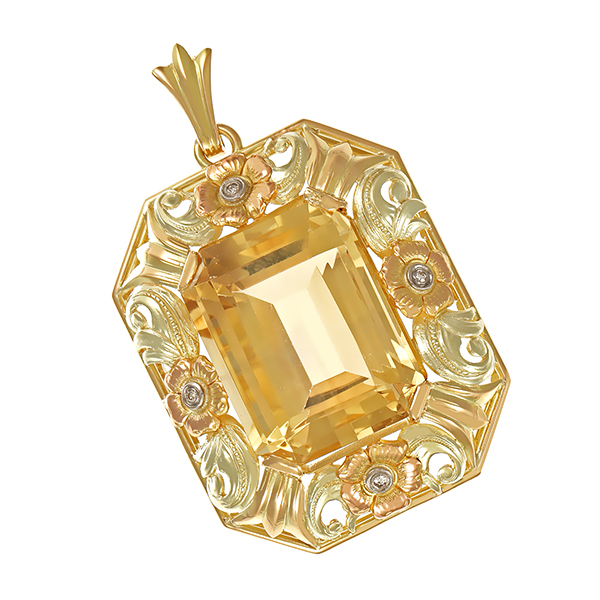 Anhänger, 14K, Gelb-/Weiß-/Rotgold, Citrin, Diamanten