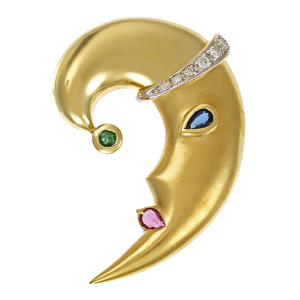 Anhänger, 14K, Gelbgold, Smaragd, Saphir, Rubin, Brillanten