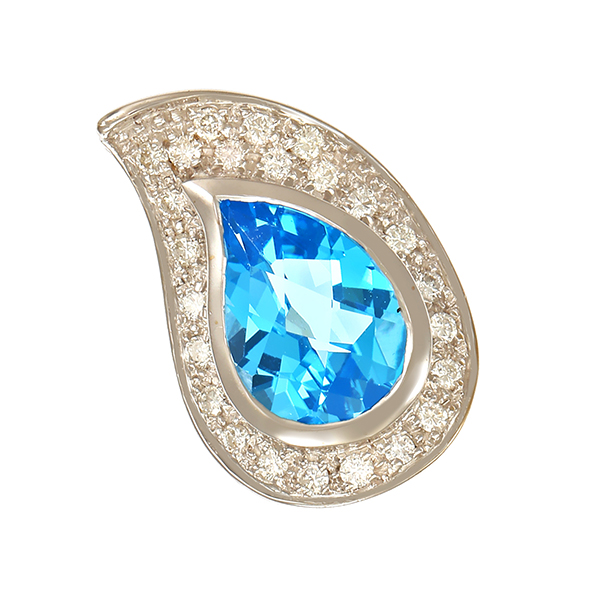 Anhänger, 18K, Weißgold, Brillant, Topas blau
