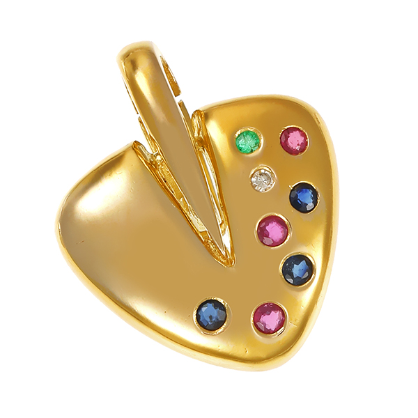Anhänger, 8K, Gelbgold, Diamant, Smaragd, Rubine, Saphire