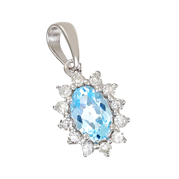 Anhänger, 14K, Weißgold, Topas blau, Diamanten 0,14ct