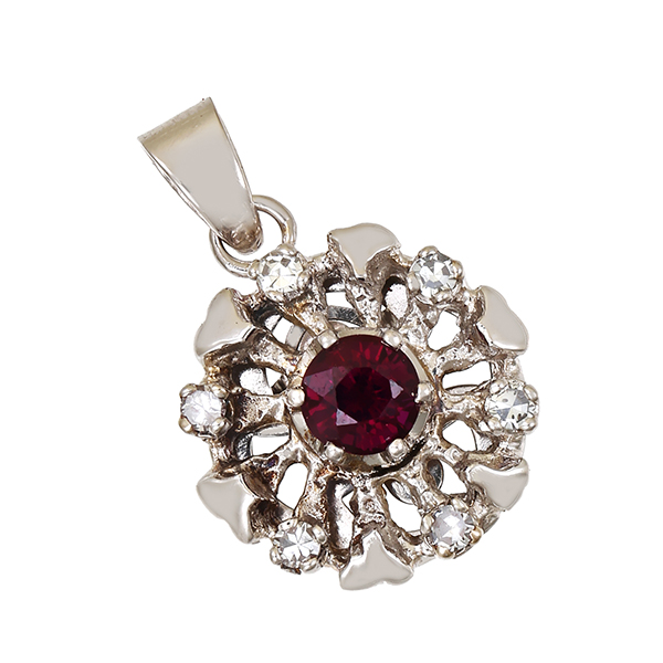 Anhänger, 14K, Weißgold, Rubin, Diamanten
