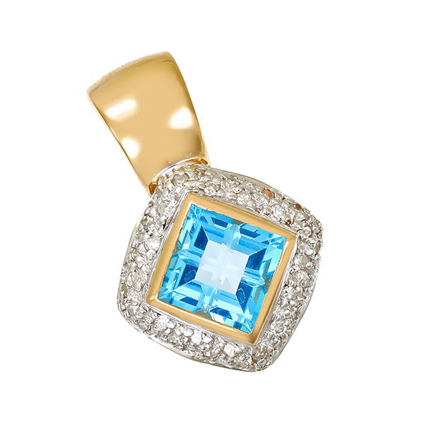 Anhänger, 14k, Gelb-/Weißgold, Topas, Diamanten