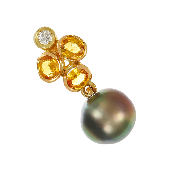 Anhänger, 14K, Gelbgold, Tahitiperle, Brillant, Saphire