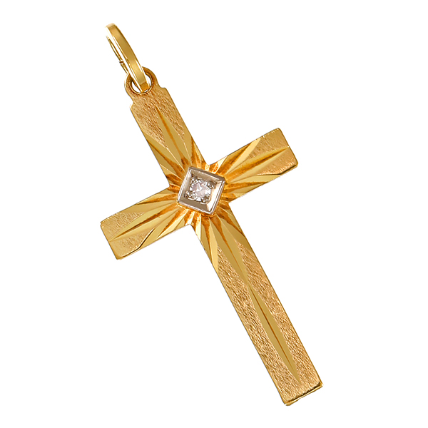 Anhänger, 14K, Gelb-/Weißgold, Diamant, Kreuz