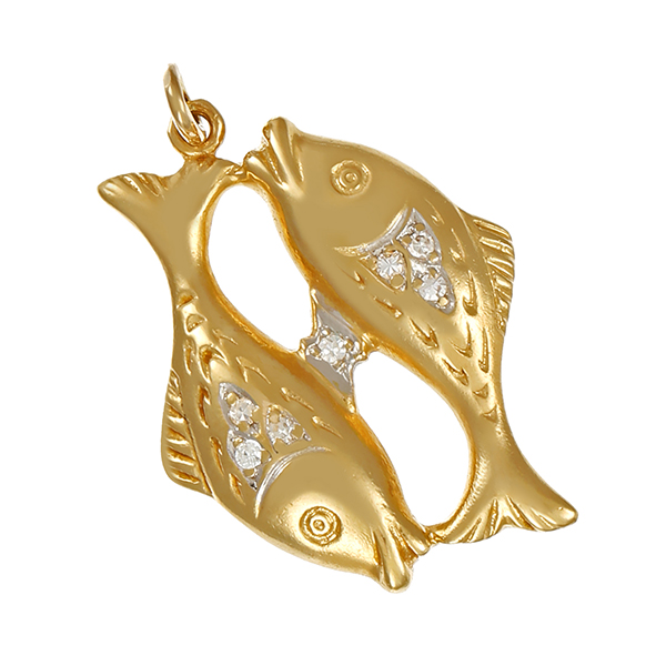 Anhänger, 14K, Gelbgold, Diamanten, Fische