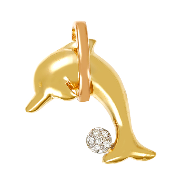 Anhänger, 18K, Gelb-/Weißgold, Brillant, Delphin