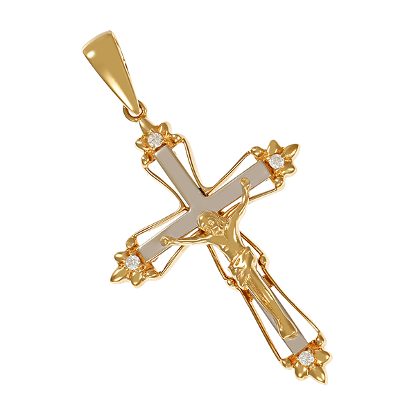 Anhänger, 14K, Gelb-/Weißgold, Zirkonia, Kreuz, Kruzifix