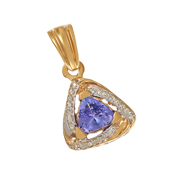 Anhänger, 9K, Gelbgold teilweise rhodiniert, Tansanit