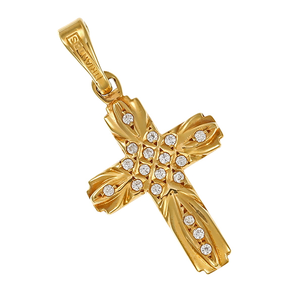 Anhänger, 14K, Gelbgold, Zirkonia, Kreuz