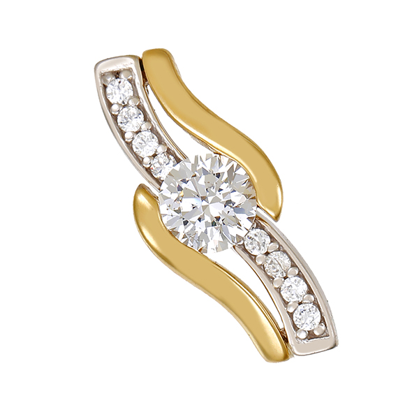 Anhänger, 14K, Gelb-/Weißgold, Zirkonia