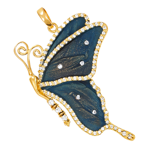 Anhänger, 22K, Gelbgold, Zirkonia, Schmetterling