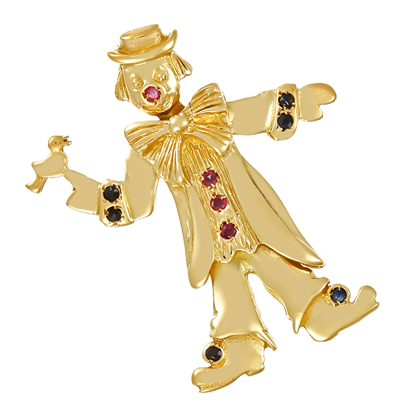 Anhänger, 14K, Gelbgold, Rubine, Saphire, Clown