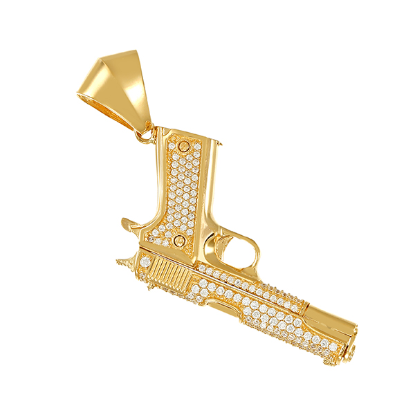 Anhänger, 14K, Gelbgold, Zirkonia, Pistole