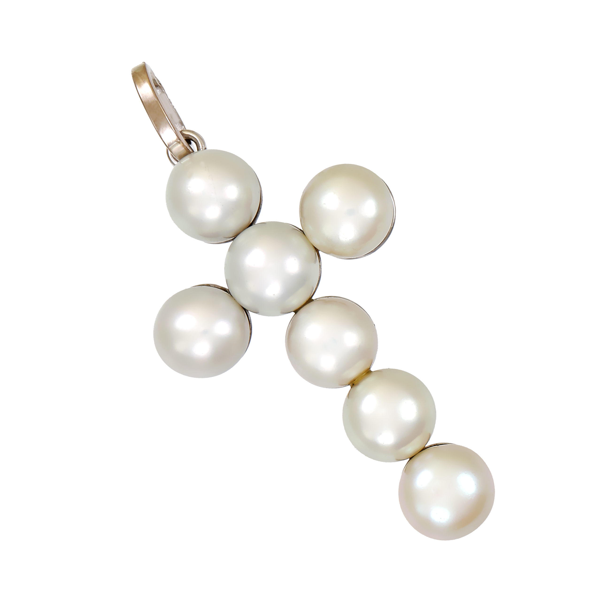 Anhänger, 18K, Weißgold, Perlen, Kreuz