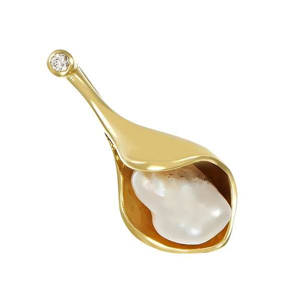 Anhänger, 14K, Gelbgold, Perle, Brillant