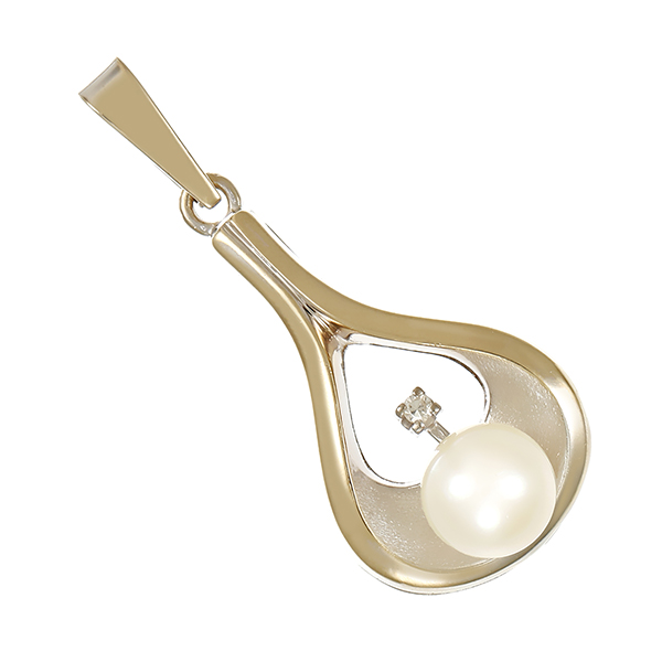 Anhänger, 14K, Weißgold, Perle, Diamant