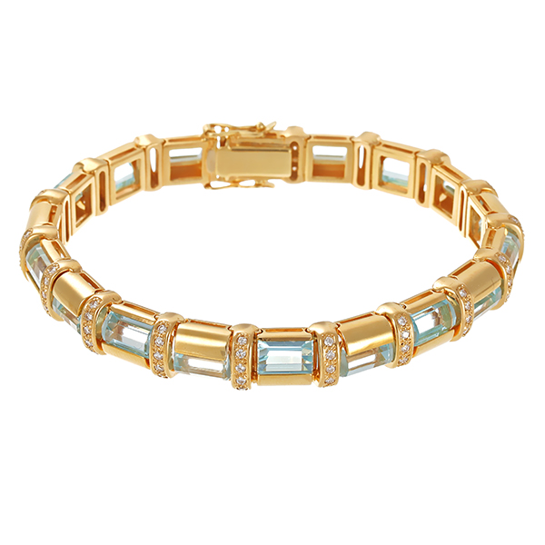 Armband, 18K, Gelbgold, Topas blau, Brillant