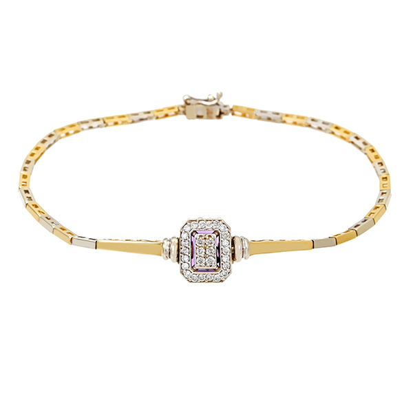Armband, 14K, Gelbgold, Weißgold, Amethyst, Brillanten