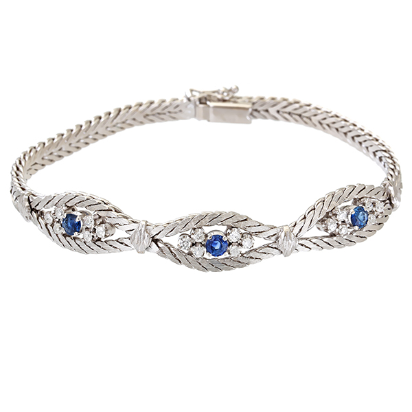 Armband, 14K, Weißgold, Saphire, Brillanten