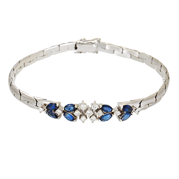Armband, 14K, Weißgold, Saphir, Brillant