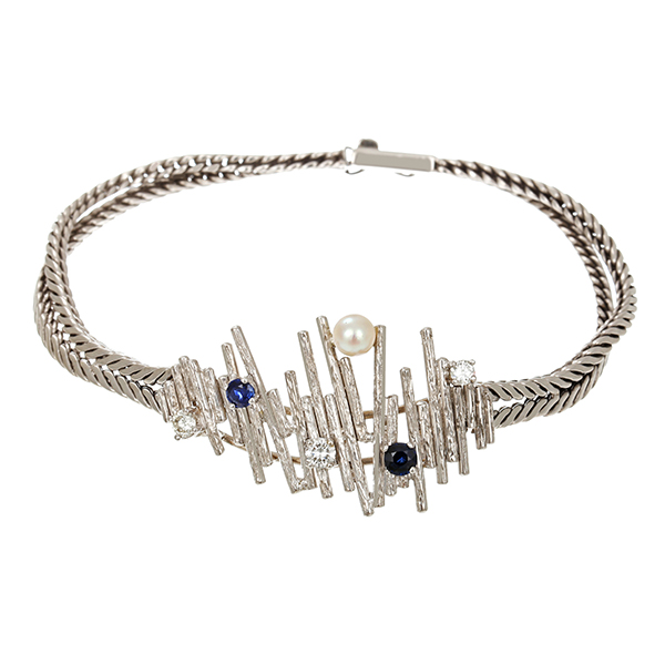 Armband, 14K, Weißgold, Saphir, Perle, Brillanten