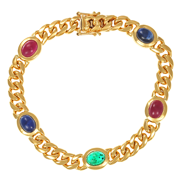 Armband, 18K, Gelbgold, Rubin, Smaragd, Saphir