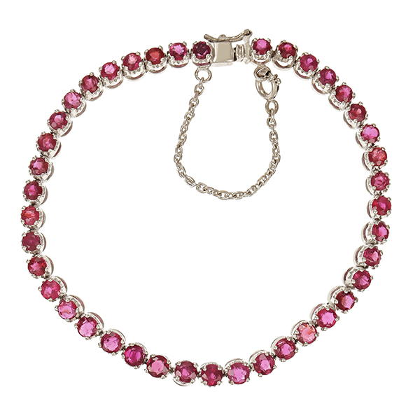 Armband, 14K, Weißgold, Rubine, L18cm