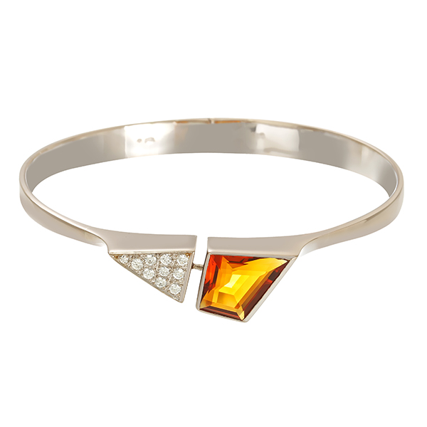 Armreif, 18K, Weißgold, Brillanten, Citrin