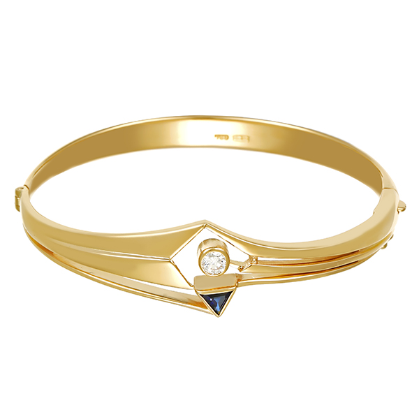 Armreif, 18K, Gelbgold, Saphir, Brillant 0,30 ct
