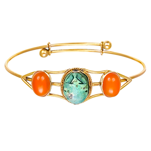 Armreif, 18K, Gelbgold, Karneol, Türkis,