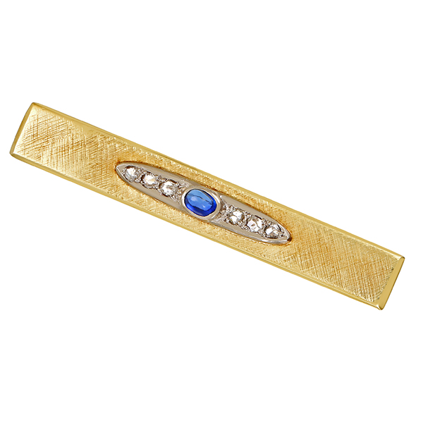 Brosche, 14K, Gelb-/Weißgold, Antik, Saphir, Diamantrosen