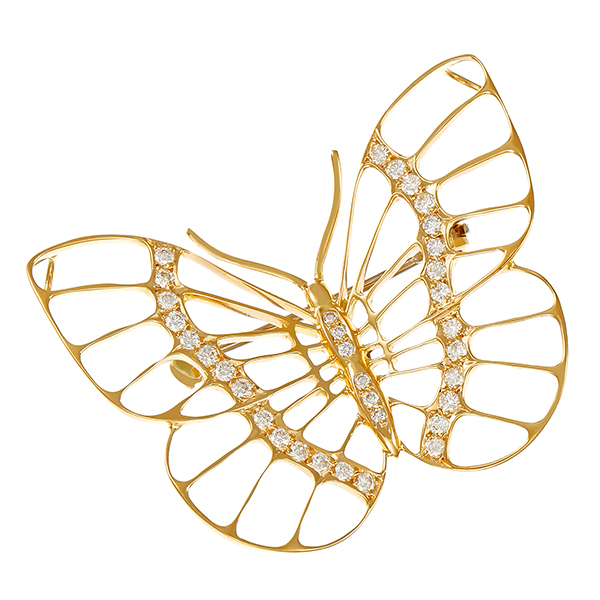 Brosche, 18K, Gelbgold, Brillanten, Schmetterling