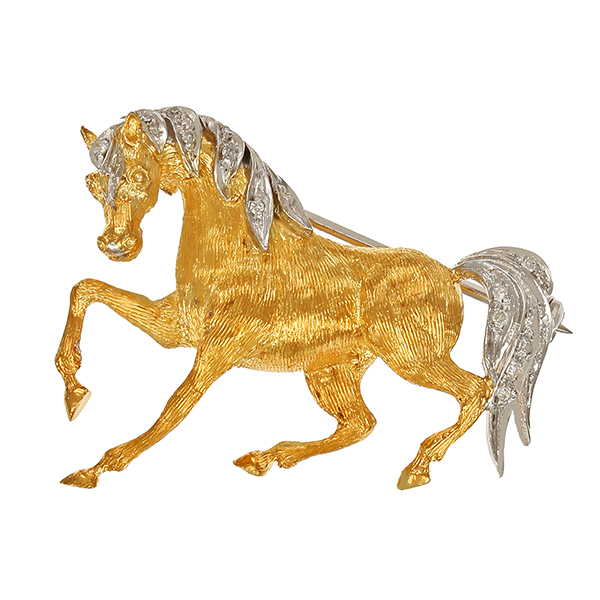 Brosche, 18K, Gelb-/Weißgold, Diamanten, Pferd