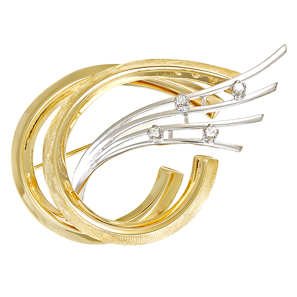 Brosche, 14K, Gelb-/Weißgold, Diamanten