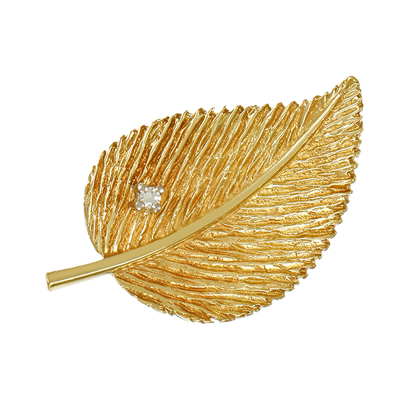Brosche, 14K, Gelbgold, Brillant, Blatt