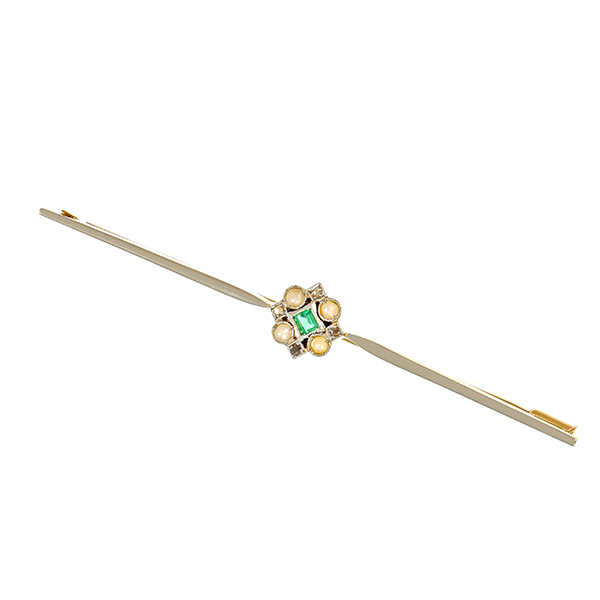 Brosche, 18K, Gelb-/Weißgold, Smaragd, Diamanten