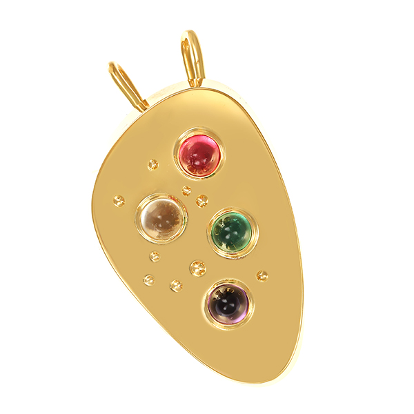 Brosche, Anhänger, 14K, Gelbgold, Bergkristall, Turmalin, Amethyst