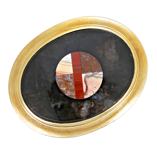 Brosche, 14K, Gelbgold, Achat,Jaspis