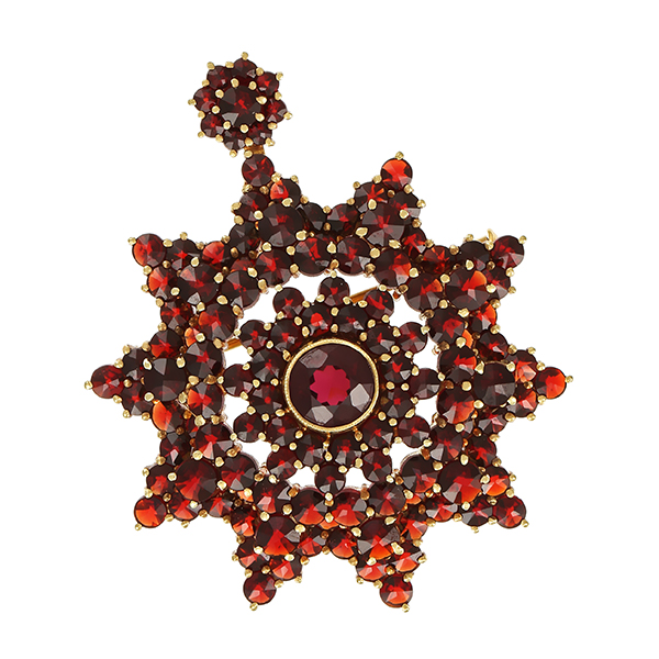 Anhänger, 14K, Gelbgold, Granat, broschiert