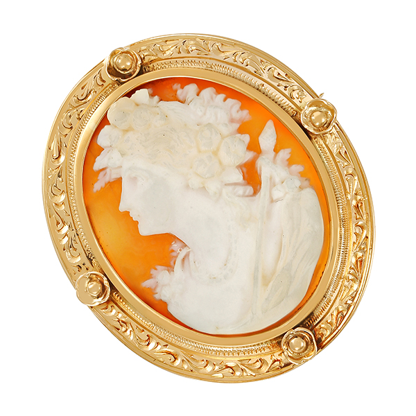 Brosche, 14K, Gelbgold, Gemme, Antik