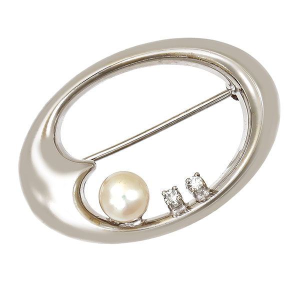 Brosche, 14K, Weißgold, Perle, Diamanten