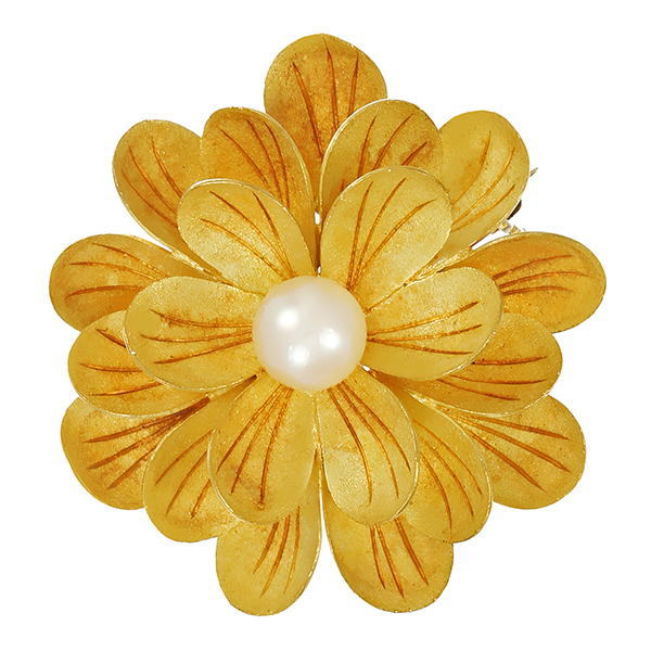 Brosche, 18K, Gelbgold, Zuchtperle