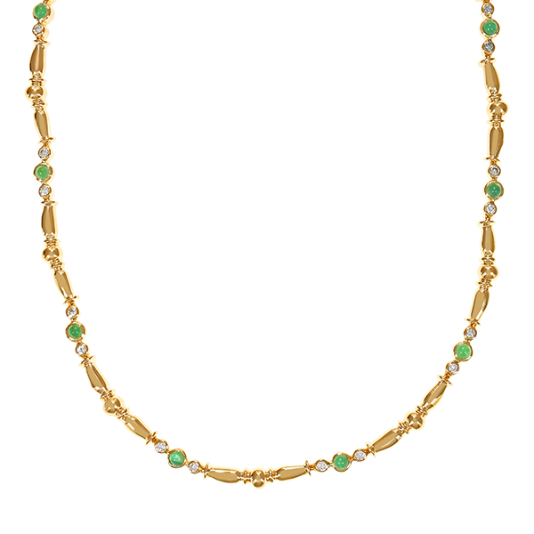 Collier, 18K, Gelbgold, Smaragde, Brillanten 0,72 ct